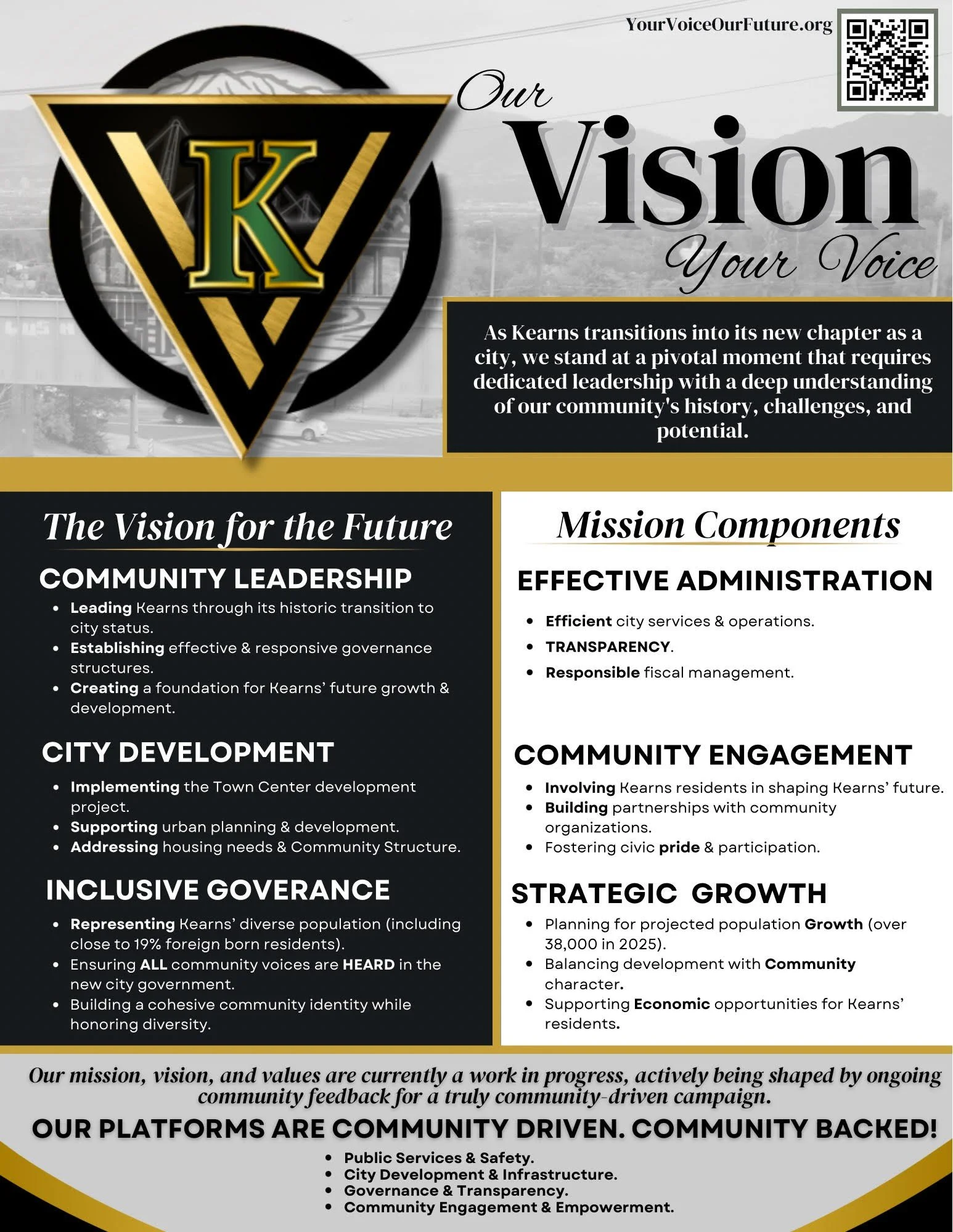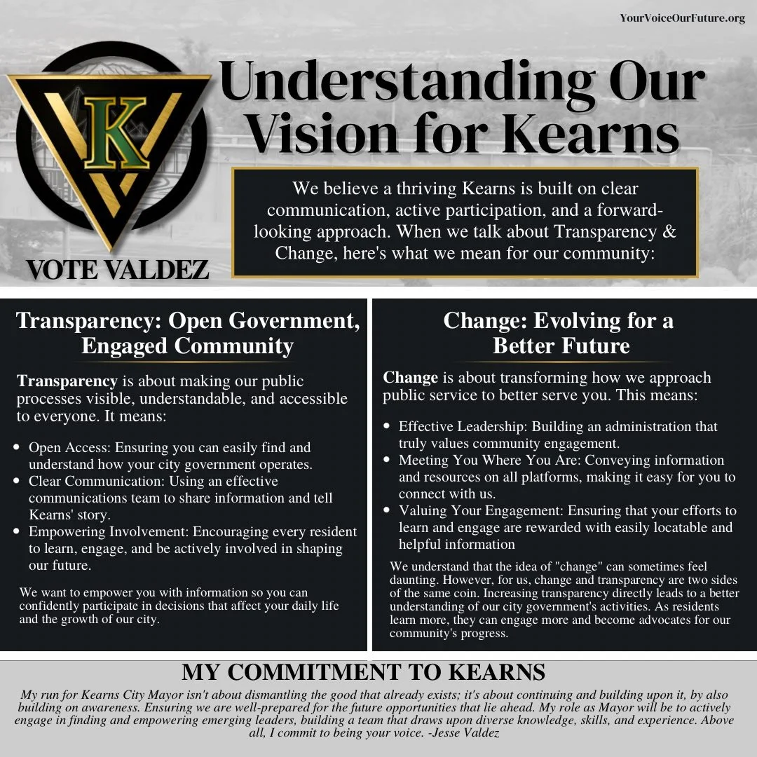 An educational initiative providing materials about Kearns' transition to cityhood, the roles and responsibilities of city officials, and explanations of how city decisions impact residents.